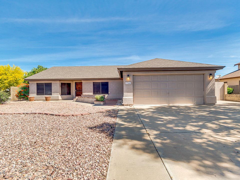 Take a look at this amazing 4 bed 2 bath home in Copperfield, a desirable Peoria community with NO HOA! This 2,080 SF home features high quality block construction and sits on a large corner lot next to community mailbox with WIDE poured concrete side yard RV parking! So bring your toys because there's room for at least 2 or 3! Backyard has a sparkling play pool, private covered patio with two ceiling fans, and a huge barn-style shed/workshop with a second level and electric with tons of storage! Gray shaker cabinets and subway tile backsplash in the kitchen. Hardwood floors in the Master and Living Room. 16' tile in the kitchen, baths, and hallways. A+ schools! 101 and T-bird is super convenient with everything from shopping to restaurants to fast food to parks. What are you waiting for?