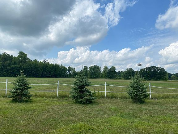 Here is the most amazing 22 acre horse farm, featuring separate pastures for rotation, 5 acre hay field, beautiful 60 x 60 barn that includes 4 large box stalls, small indoor arena and hay storage. Also 2 - 12' leans on each side, automatic waterer and work station. Land has a wooded area with trails to ride on and see wildlife. Home is one level living with a large kitchen and informal dining area open to the living room, vaulted ceilings, tile floors, deck in the back with screened room, front open porch and much more. Attached garage is insulated and heated, detached 36 x 40 garage for all the extras. Private setting back off the road, this is a must see!
