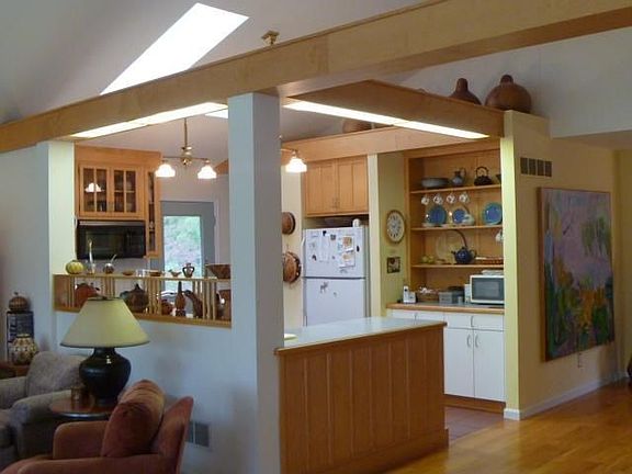 Truly unique.This eco friendly home was designed by a local architect to integrate beautifully with its natural settng of more than six acres. Built by local craftsman using native hardwoods the comfortable open floor is filled with light.