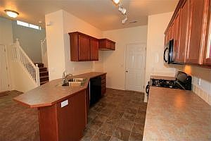 Affordable quality in new cluster development. Intimate neighborhood w/privacy near parks. Landscaping front and back w/fencing & sprinklers. Deep stainless steel sink in kitchen with sleek black appliances, self cleaning gas oven/range and freezer outlet in garage. Upstairs reserved for bedrooms, vaulted master suite & convenient laundry. Easy access to Cda, Hayden and PF.