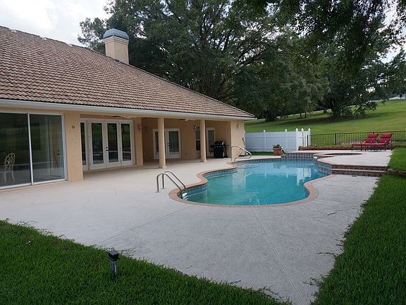 This beautiful pool home is on a double lot overlooking the 1st hole of the Ocala National Golf Club. The gourmet kitchen has granite countertops, Sub Zero refrigerator and Thermador gas range. The spacious master bedroom has his and her bathrooms and walk-in closets. His has a steam/shower combination. Fourth bedroom can be used as an office or media room. Solid wood interior doors throughout. Light and bright throughout the home with 9-12" ceilings. Aggressively priced for short sale.
