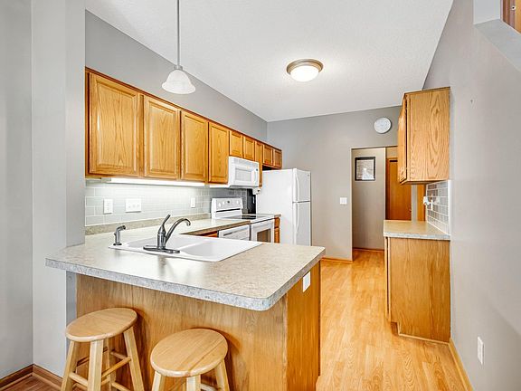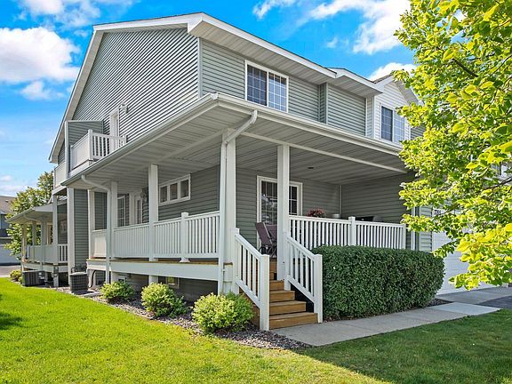 Welcome home! This move-in ready town home features an amazing wrap around covered porch with 2 separate entrances into the bright and open main level. The kitchen has tons of counter/cabinet space and is complete with backsplash and a coffee bar! Some updates include brand new Stanton carpet, new tile on bathrooms floors, and a freshly painted interior. Head upstairs to the primary suite which has a stunning remodeled private bath and a large walk-in closet. Two more bedrooms, a laundry room, and full bathroom complete the upper level. Lower level offers a versatile living space! Family room, rec room, office, gym...You can make this space your own! Newly redone lower level bathroom too! This home is conveniently located near Prairie Park which offers parks, trails, a splash pads, pickleball courts, and so much more! The perfect place to call home!