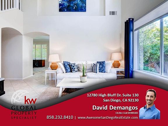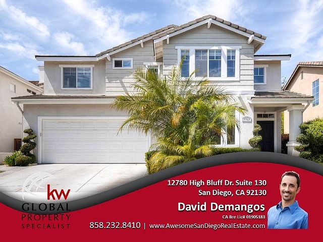 For more listing information call David Demangos at 858.232.8410 or Email: David@AwesomeSanDiegoRealEstate.com RUN, Don't Walk to this 4 bd, 3 bt w/office, GREYSTONE ON THE PARK move in ready home! Low water landscaping, Community pool and spa. Custom paint, extensive crown moldings, granite fireplace, large center island kitchen, private office with French doors, laundry room upstairs, Central A/C, & Encinitas Schools. Custom entertainment center. Extensive plantation shutters, upgraded window sill moldings! Finished garage with Epoxy floors and built-in cabinets w/massive storage racks. This is one of the most desireable pockets of homes in the La Costa Area with community pool and spa w/low HOA fees. Neighborhood is in the Encinitas Elementary and San Dieguito U.H.S. Districts. Mission Estancia, Diegueno Middle and La Costa Canyon High Schools perform at the top of the County's school scores. This neighborhood is in close proximity to Stagecoach Park & Rec. Center with tennis courts and indoor basketball gym, just a few miles from the beach, quality shopping and challenging Golf facilities.This home features four bedrooms and an office which could be converted to a 5th BR. The Family Room is oversized and features a granite fireplace with mantel. Custom paint, extensive plantation shutters, central A/C. Extensive crown moldings, upgraded window sill molding package throughout. The large open kitchen has a center island, glass cabinets, extensive recessed lighting and tile flooring. Master bedroom has a vaulted volume ceiling and the MBA features a spa tub, mirrored walk-in closet and double vanity area. Laundry room is conveniently located upstairs, tile floor and built-in cabinets!
