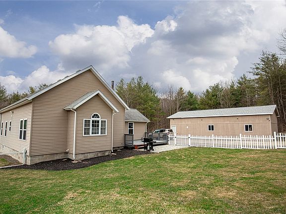 OPEN HOUSE SUNDAY MARCH 30 1-3PM! Homes like this don't show up very often! This beautiful 2010 custom built home is settled on the privacy of Hickory Hill Road with just under 10 acres of beautiful woodland all to yourself! Inside, you will walk into the spacious kitchen with a pantry and beautiful island, maple hardwood flooring, and plenty of natural light. You will see that this home was laid out with the greatest of attention to detail and flow as you enter the great room with it's vaulted ceiling, take in the woodland views from the expansive windows, and the feel the warmth of the cozy fire crackling in the woodstove. A large 3rd bedroom was added this year using the upstairs space making this a 3 bedroom 2 full bath house. The master suite, both bathrooms, and laundry are all on the first floor making great use of the main level. The basement spans the entire footprint of the house and offers all the space you could want for storage and workshop projects. In addition, a 24x50 foot 2nd building was built for even more space to use. This detached building is insulated, heated, and powered. It was built and is currently being used as a softball pitching practice space. All it needs is a few garage doors to turn this into a 3 bay garage! Outside, there is a vast amount of yard space both in front of and behind the house with the front fully fenced in including a privacy fence on the road side. With open interior space, privacy, acreage, and still less than 10 minutes travel from the schools and downtown Bath NY, THIS is the home that EVERYONE wants!