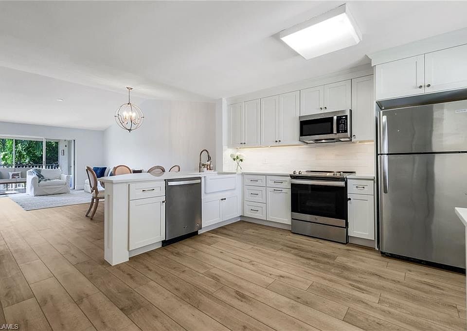 Experience the perfect blend of elegance and comfort in this beautifully updated 2-bedroom, 2-bath residence. The spacious living room features luxury Vinyl Plank flooring and sliding glass doors that open to a large balcony for seamless indoor-outdoor living. The remodeled kitchen impresses with white shaker cabinets, modern quartz countertops, and stainless-steel appliances. The master suite is bright and inviting, while the guest bedroom and bath offer comfort and style with updated finishes. Enjoy in-unit laundry, a peaceful balcony with lush views, and access to resort-style amenities—pool, fitness center, tennis, and pickleball courts. Ideally located near Vanderbilt Beach, Galleria Shoppes, Publix, and top restaurants. Schedule a showing today!