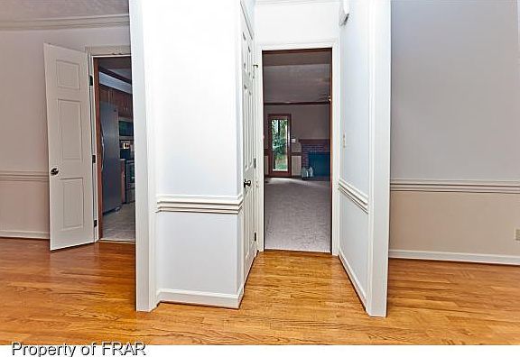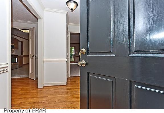 -Great home-move in ready and with new carpeting! Formal living and dining room with hardwood flooring. Kitchen w/stainless appliances and tiled floors. Great room with wood burning fireplace. Master has bamboo flooring, large walk in closet w/built in shelving. Master bath with garden tub and seperate shower. Other bedrooms are on opposite side of home. Nice deck off great room over looks backyard with privacy fenced back yard with shed. No city taxes. Near Ft. Bragg!