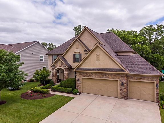 Worthington Schools Wonderful Move-in Condition 5 BR, 4.5 BA 2-story - perfect for entertaining small or large groups! 3-car garage. Open floor plan with 2-story full glass window view of rear yard and 2-story stone fireplace. 1st floor office. Large dining room with hardwood floors. 1st floor den/library with custom built-in shelving. Large owner's suite with amazing walk-in closet, soaking tub, and double sink vanity. 2nd floor guest suite. Finished lower level complete with additional guest suite. Wooded and open lot - perfect for privacy and entertainment. Rear composite deck off eat-in kitchen area and paver patio off lower level family room with kitchenette. Back-up generator.