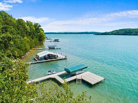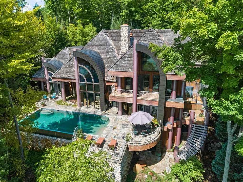 This home has WOW power! In this artistic, custom designed & built home on Walloon Lake you will find...Family Time is Quality Time! With a gorgeous setting on the south-facing sparkling waters of Walloon you can have it all. This spectacular home features: an infinity pool overlooking the lake, an indoor official size racquetball court, a "Martha Stewart" kitchen and galley, a built-in wood pizza oven, a green house & potting area, and plenty of open living space to enjoy. The home was built in 1999 for year-around living. It has two new state-of-the-art boiler systems, which provide in-floor heating and a heated driveway. With five bedrooms and 5 bathrooms, three car garage, and a new boat dock, this property is perfect for family, friends, entertaining, and joyful living! With over 7500 sq ft of living area, it is spacious yet cozy...you may never want to leave! But if you do want to venture out, downtown Petoskey, Charlevoix, Boyne City, Bay Harbor, and airports, are all within a quick drive. Vacant lot across the road is also included. Shown by appointment only with agent. NO SHOWINGS UNTIL JULY 25th.
