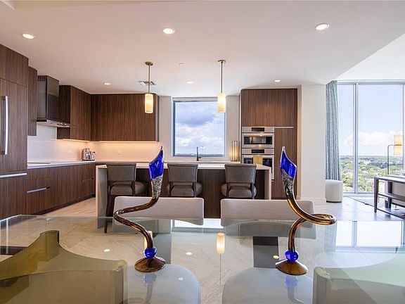 Positioned on the sought-after northeast corner of Reflection, #1303 offers unmatched views of Mirror Lake, Tampa Bay and the dazzling downtown St. Petersburg skyline. DIFFERENT FROM A STANDARD BUILDER UNIT OR FLIP, THIS CONDO ALREADY INCLUDES OVER $157,000 IN FIXED UPGRADES. All the hard work is complete! This home is elevated above the rest and is fully ready for move in. It is designed for those who want a completely finished, move-in-ready home. With 2052 square feet of fully finished luxury, this 2024 newly constructed 2-bedroom, 2-bathroom condo has been meticulously enhanced and lightly lived in as a second home since October 2024. Every detail has been considered to create a space that blends elegance, comfort, and functionality. UPGRADES INCLUDED IN THE SALE are California Closets with Pietra finishes with integrated lighting in the primary suite closet, guest room Murphy bed with matching desk, living room entertainment center, and additional closets, a $43k improvement. The chef’s Italkraft kitchen has fully upgraded walnut cabinetry, Bosch appliances, induction cooktop, double waterfall edge 8 foot island, full quartz slab backsplash, upgraded dry bar with matching upgraded full slab backsplash. 23 customized Italkraft pullouts in all lower cabinets is a $14k upgrade to the standard kitchen package. The 5’x5’ window, with a customized automated shade, floods the kitchen with light. The expansive living room has glass walls with breathtaking sunrises and sunsets. Remote controlled automated custom drapes retract seamlessly to maximize the views, a $17k improvement. With a private 159 sq ft balcony, this particular Citrine condo has the only sliding doors that open on the right side, which is the interior wall, and natural path to the sliding doors on the floorplan. Bathrooms upgraded with 6-inch quartz backsplashes in both baths and a glass shower enclosure in the guest bath, a $3500 improvement. FINISHING TOUCHES The entire condo has been professionally repainted in Sherwin Williams Alabaster and crisp white semi-gloss trim and doors. Restoration Hardware lighting package including Thaddeus sconces (DR), alabaster pendants (KIT), and a Peralta chandelier (LR). Custom blackout drapery in both bedrooms, 2 Maverick ceiling fans in bedrooms, Brizo faucets, upgraded undermount laundry sink ($6k), upgraded 24’x24’ ceramic tile throughout. 10 Lutron Sunnata touch dimmers throughout, Dual Nest thermostats for both HVACs, MERV 13 filters, building water softener. Extra personal storage unit on same floor. For an additional cost, the home furnishings are available for purchase. RH furnishings throughout the home include silk & wool rugs, items from the Thaddeus collection, Italia sofas, Cayden collection and more. AMENITIES, Enjoy a 12,000 sq. ft. rooftop with a heated pool, spa, sauna, fire pit, outdoor kitchen, fitness center, and clubroom all with panoramic views. Reflection is a short walk to Central Ave or a 2 min ride in the resident golf cart, putting food, arts, and more at your fingertips. Covered secure dog area with pet bathing station. Secured bike storage area for community. PARKING AND EV Two parking spaces one of which includes a private installed level 2 charger, a $3,800 upgrade. Schedule your viewing.