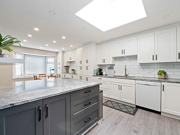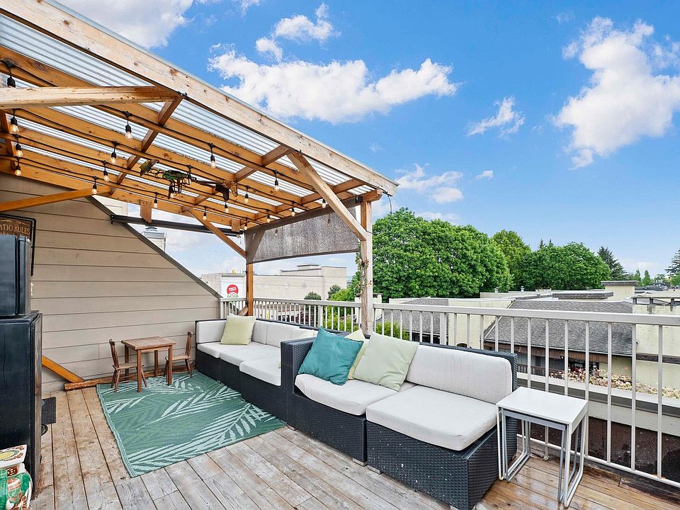This bright 3-level, 1,730 sq ft home offers more space than many detached houses—perfect for young families! With entries on the 3rd and 4th floors, the smart layout features a central living area, bedrooms below, and a loft above that leads to a sunny rooftop deck with pergola. Vaulted ceilings and skylights fill the space with natural light, creating a breezy, open vibe. The fully renovated kitchen is ready for family meals and good times. Located in the heart of Uptown New West, you're steps from the new high school, transit, and across the street from Moody Park, steps from Royal city center with all of your shopping needs. Includes 2 parking spots, storage locker and loads of charm. You’re going to love living here!