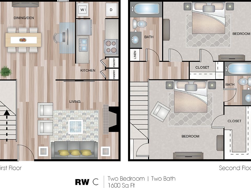 Our Regents Walk Townhomes range from 2 to 4 bedroom models, and range between 1,400 to 2,400 spacious square feet. Regents Walk is full of character with each unit sporting its own unique traits. With so many options to choose from, you're sure to find a new home that's right for your family. These spacious and pet-friendly townhomes feature many individualized details that will charm you, including crown molding, full size washer and dryer connections, huge walk in closets, and private patios and yards. Some of our Regents Walk Townhomes are even more distinctive with built-in mini bars, decorative fireplaces, brick bookshelf space, separate dining rooms and so much more.
