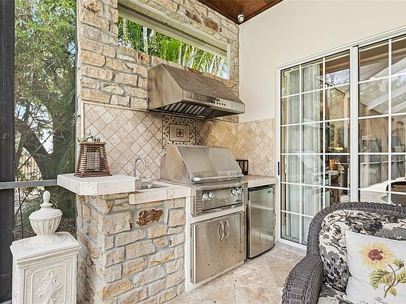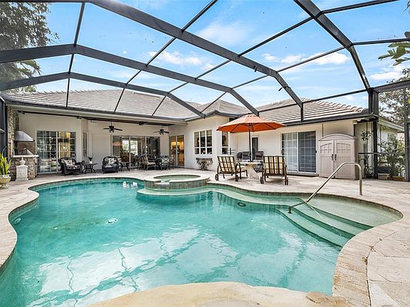 Experience refined living in this single-level executive residence located in the prestigious guard-gated community of Placido Bayou. Rarely available at this generous square footage, this Rutenberg-designed home blends timeless craftsmanship with thoughtful functionality in a highly desirable single-story layout. A custom front landscape with dramatic night illumination creates a memorable first impression, complemented by a side-entry three-car garage for added curb appeal. Inside, soaring ceilings and expansive spaces welcome you to a well-designed split floorplan featuring four bedrooms, a bonus room, and a separate office—ideal for both family living and entertaining. The open-concept kitchen flows effortlessly into the family room, highlighted by rich cabinetry, custom built-ins, and a cozy hearth with a gas fireplace framed by plantation-shuttered windows. The privately situated primary suite features a spacious bathroom with a large customized walk-in closet, updated shower, and jetted tub. Three additional bedrooms and two full baths are located on the opposite side of the home, providing comfort and privacy for family or guests. Step outside to your private oasis with a custom pool, waterfall feature, and outdoor kitchen—perfect for relaxing or entertaining year-round. Notable upgrades include a whole-house Generac generator, gas fireplace, gas tankless water heater, new zoned HVAC system with updated ductwork, stainless steel KitchenAid appliances, and a spacious laundry room with utility sink. Ideally located just minutes from downtown St. Petersburg’s dining and shopping, the Vinoy Golf Club, Racquet Club tennis and pickleball facilities, and offering quick access to Tampa, area beaches, and two international airports. Enjoy peace of mind with no flooding during hurricanes Helene and Milton.