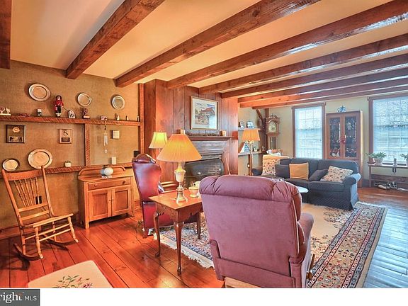 WOW, WOW, WOW was all I could say when I toured this remarkable home. The Original Barn was built in 1858, it had been used as a barn and slowly over the years started to deteriorate. My Seller lived down the street and in 1966 decided he would buy it to make it his Family Home. The care and love he put into this home shows through in every room and in every detail. Not only is it loaded with Character and Charm at every turn, it is also Super Efficient with Newer Central Air, Oil Heat, 2 Propane Fireplaces and 1 Wood Fireplace. The Exterior of this home is all Repointed Red Sandstone with 2' Walls. The Walkways are all Brick leading to covered back porch. Deep windowsills are all hand cut with Hand cut Oak Beams throughout entire home. Solid Wood Doors with Original Hinges. 2x6 Yellow Pine Floors adorn the entire home. As soon as you enter the Foyer you are taken back with the Custom Upgrades, Careful Thought and Care was felt throughout the home. Living Room with Custom Gas Fireplace on Thermostat with Custom Mantel from local farm, Window sill with Candle Box. Country Kitchen with Custom Cabinetry, Brick Gas Fireplace and Bake Oven with Large Island with Butchers block Counter. Formal Dining Room with Hand Planed Wainscoting. Stairway Hallway with Custom Coatrack from Pine Forge Institute and Impressive Stairway leading to second floor. Large First Floor Laundry Room with Laundry Sink, Pantry and Powder Room with Marble Vanity top. Staircase open to below with Open Beam Ceiling throughout leading to 2nd floor where you will find a 4 bedrooms. Spacious Master with Floor to Ceiling Windows, Wood Burning Fireplace, Large Walk through Closet, Sitting Room and Private Bath with Tiled Stall Shower. 3 More Bedrooms and Shared Bath. Full Walk Up Attic Access above. All fireplaces can be converted back to wood. Lets not forget the Finished Family Room in Basement with Stove and also opens to shop/storage area. 1 Car Heated Garage, HUGE Attached Heated Shop. There is also a small barn on the back of the property which was rebuilt here, including a lean to. This home has been well cared for and everything in the home has a story or was brought from another Farm or Barn in the area. Beautiful 1.9 Acre Lot. The front of the home is lined with a custom rebuilt Stone Wall. This home is a Must See. Click on The VIRTUAL TOUR FOR 3D Tour!! Tours with Current Owner and Available by request. Located minutes from Turnpike, Routes 82,345,10,176 &422. TVSD Robeson Elementa