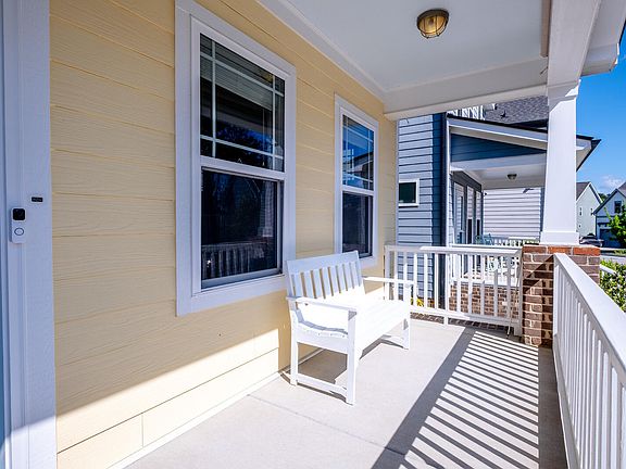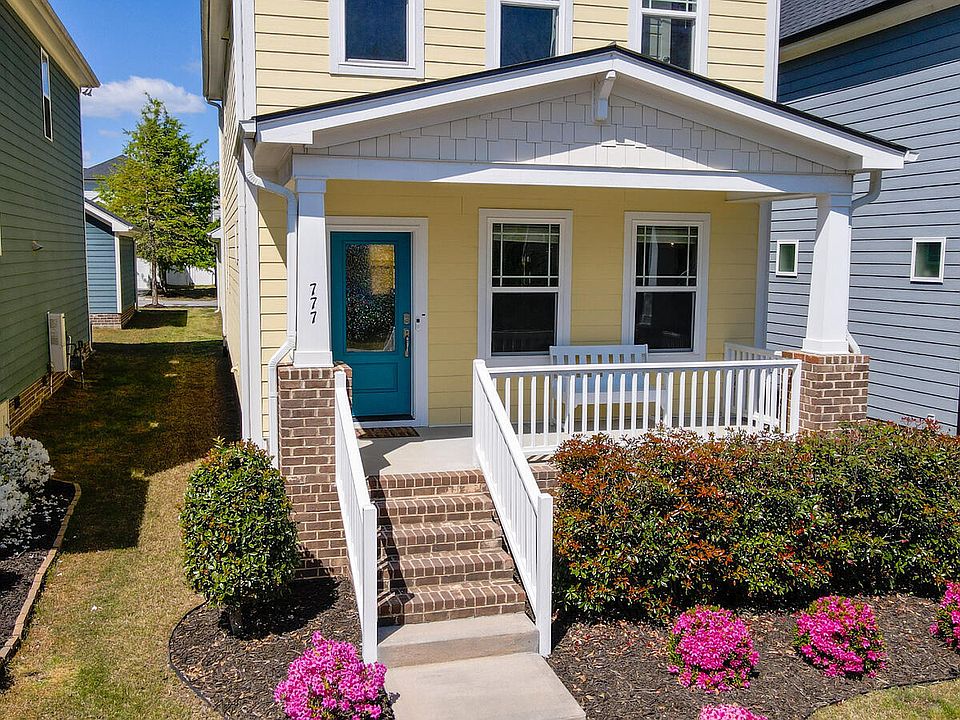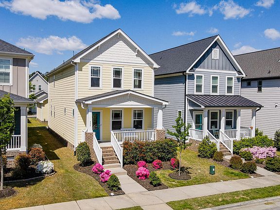 Darling Knightdale Station home is ready for you. Great open floorplan. Gourmet kitchen with a 10' granite-counter island, a gas range and Stainless appliances. Easy-care LVP flooring is also a plus. First floor flex space can be great for a study or office area. The primary bedroom is on the second floor with lovely light and TWO walk-in closets. The private ensuite bathroom has dual vanities and a tiled shower. Two other bedrooms are upstairs and have a ''jack & jill'' bath to share. Nice manageable yard and patio area lead to detached two-car garage with extra storage. Only 30 min to DT Raleigh or RDU; but Knightdale is booming all on its on. The alley to access garages is a private road and is maintained by HOA.