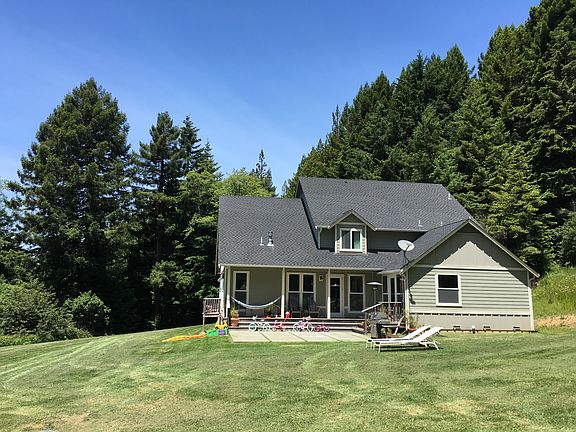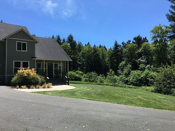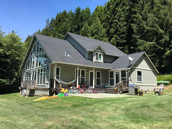 Trinidad Blue Sky Home- Beyond Gorgeous Trinidad Home with 25 foot ceilings in an exceptionally sunny and completely private location on 3 acres, yet just a two minute drive to the Village of Trinidad, Indian Beach, or Trinidad State Beach. Every time you get home it feels like you are arriving at a beautiful vacation destination. This home is beautifully finished with white oak, slate, and marble floors, handmade white painted shaker cabinets, Restoration Hardware light and bath fixtures throughout, kitchen with commercial style stainless range and hood, granite counters in kitchen and baths, recessed lighting, two gas fireplaces, large covered front and back porches, big sunny patio, on demand water heater, double finished attached garage w/opener. At the end of a private paved drive.