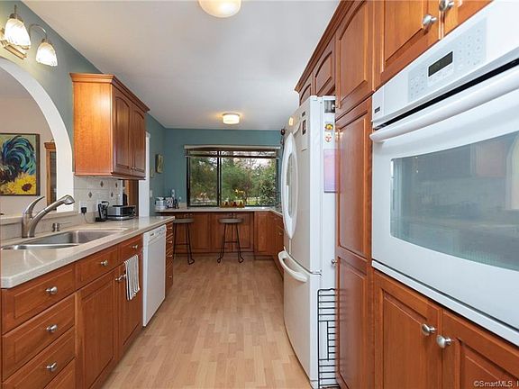 Lovely 3 bedroom Berkshire model. Hilltop location and just a short distance from the garage to the front door with no steps. This unit offers a beautifully updated kitchen complete with cherry cabinets, Corian counters and a cozy breakfast bar. The living room features 9' ceilings and a wood-burning fireplace. Two sets of glass sliders offer access to a large flagstone patio. Large primary bedroom suite has plentiful closet space, a dressing area and built-in window seat. With 2 additional bedrooms, there's plenty of room for guests or to have a home office and a separate den space. Heritage Village holds rank as one of the top 55+ communities in the US today. This stunning community is surrounded by woods, rolling hills and New England charm. The Village provides some wonderful recreational amenities for all residents to enjoy; 4 outdoor swimming pools, tennis, a fitness center, bocce and pickleball courts, to name a few. There's a one time buy-in fee of $2000 for all purchasers.