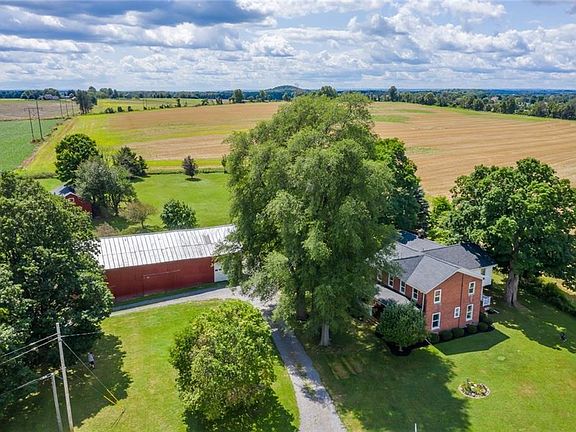 Historical Brick Colonial on 2.74 acres. Surrounded by rolling hills and open fields. Breathtaking views and a true beauty with a 65' x 25' barn with loft and a second 24' x 30' out building. Known by many for its grace and setting in W Henrietta. Tons of recent updates includes 20k for new front porch and smaller side porch, todays colors throughout, new carpet and refinishing of hardwoods and plank floors. Yesterdays charm with some of todays touches. Ideally located near all conveniences. New roof within last 3 years and front portion within last 4 months. Home boasts large rooms with tons of amazing light and exceptional flow. Easy and peaceful living. Many opportunity are possible in this well adored home. Gas service can be brought to house at no cost with 3 month contract with RGE. **** TWILIGHT OPEN HOUSE August 14, 2019 from 5:30 -7:00 pm