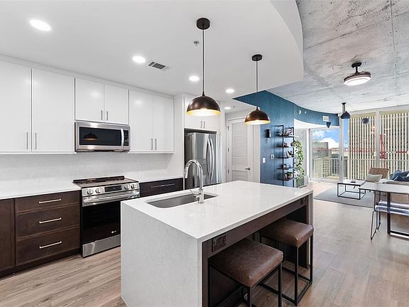 Floor-to-ceiling windowsStylish bathWide-plank luxury vinyl flooringMotorized shadesPremium stainless steel appliancesDesigner solid wood cabinetry