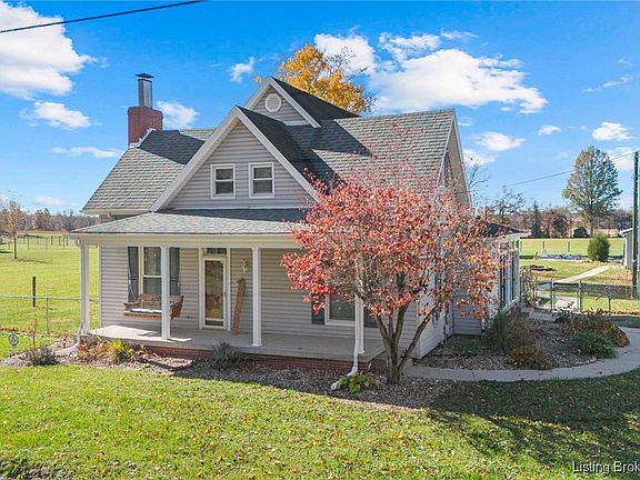 Welcome to this beautifully restored early 1900s farmhouse on 4.94 acres in the heart of Scottsburg! This 4 bedroom, 2-bath home exudes historic charm while offering modern comforts, featuring a spacious living room, a dining room with gorgeous built-ins and exposed beams, and an updated kitchen with all appliances. Enjoy endless entertaining possibilities with an enclosed patio and a stunning in-ground pool, complete with a pool home that includes a bathroom and kitchenette. The property also offers an oversized two-car garage, a 30x80 pole barn with a lean-to, and a fenced area that spans half the property. This is country living at its finest!