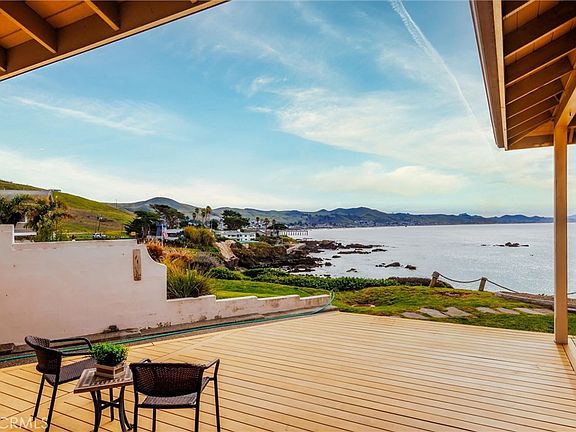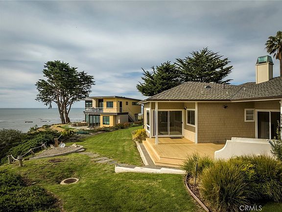 Slice of Paradise in Cayucos ~ waves lapping, forever unblockable views of the deep blue ocean spanning from Cayucos Pier to Morro Rock, to Los Osos, spectacular sunsets, & seasonal calls of the humpback : these are just a few perks that await you at 777 North Ocean Ave, Cayucos. Located at the very north end of North Ocean Avenue, the property offers quiet and tranquility, with close proximity to downtown Cayucos, Cayucos Pier, stores and local amenities. The home offers single-level living on an approximately 1,904 sq. ft. in living area; with three bedrooms, two full baths and an adjoining two-car garage. Ocean views can be seen as soon as one steps into the foyer/hallway. The large and numerous windows in each room bring in lots of natural light. The kitchen has been updated with tiled counters and stainless steel appliances. The walk-in pantry is a nice addition to the cabinets, offering plenty of storage space. The stand-alone island could be additional prep-space, to the spacious counters, and there's also a breakfast bar. The kitchen and both bathrooms are nicely tiled for ease of maintenance, while the living/dining and sleeping quarters have carpet flooring. High ceilings, coupled with an open floor plan enhances the spaciousness, while the fireplace provides warmth on cooler evenings. The primary bedroom/ensuite is located towards the rear on the northwest corner for privacy, while the two guest bedrooms are situated along the front hallway towards the front of the property. One of the guest bedrooms is currently set-up as an office with built-in shelving and desks. There's a full bathroom in the hallway between the two guest bedrooms. From within the primary bedroom and bathroom, views of the whitewater and waves make one feel like you're right next to the ocean. Both the living/dining area and primary ensuite have sliding glass doors that open up to the roomy rear deck and a nicely landscaped backyard. More gorgeous ocean views await you. Both the rear deck and backyard are great for a quiet morning, or get-together with family and friends. There's even a patch of green for your furry ones. Love to hike? The Estero Bluff State Park is just steps away, with miles of accessible and pet friendly trails along the beautiful Pacific Ocean. Call your Realtor today for a private tour.