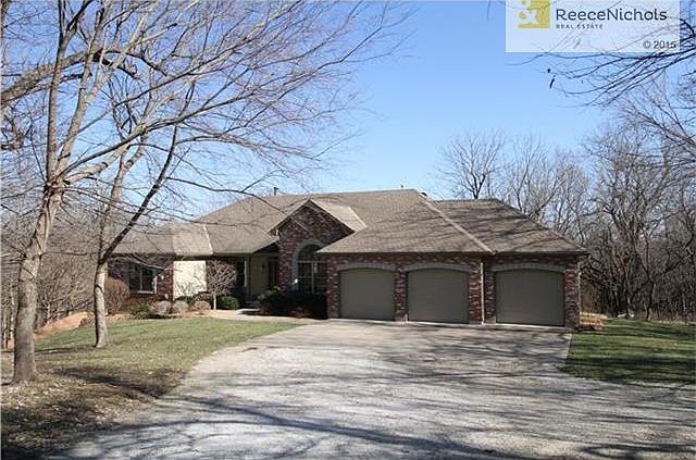 Watch the stars from your back porch. Stunning Reverse Story ½ set in the woods that borders Powell Gardens. 4 acres of beautiful woods surround this home. Private setting on cul-de-sac with paved roads. This custom built home has been meticulously cared for. Master on main level with sliding door to the deck, screened porch, room to finish a 4th bedroom, lawn equipment garage on the lower. This home has storage galore!