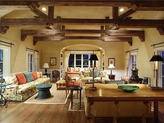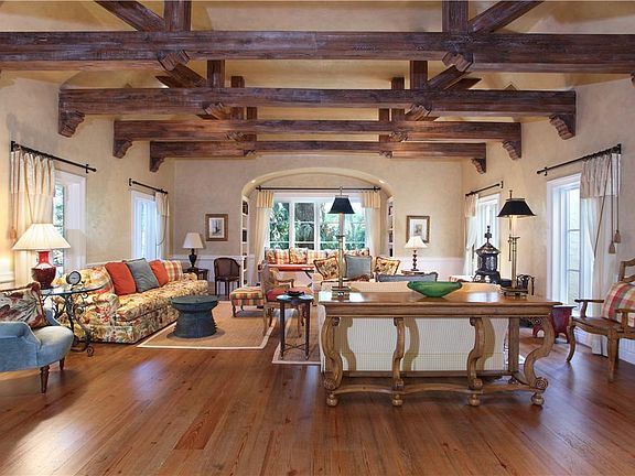 Steeped in the wonderfully warm character of Old Florida, this Spanish Colonial-inspired estate was designed by celebrated Palm Beach society renowned architect Addison Mizner, this brilliantly renovated 1926 gem is a perfect marriage of warm Old World charm and gracious modern living. Steeped in the wonderfully warm character of Old Florida, this Spanish Colonial-inspired estate was designed by renowned architect Addison Mizner, who rose to fame in the 1920’s, fashioning gracious Palm Beach estates for wealthy, socially prominent clients, and later that decade, brought his vision to Boca Raton. One of the few and thus highly prized Mizner residences built in Boca Raton, this 1926 gem casts its charming spell in a tree-canopied tropical oasis in sought after Old Floresta, a unique historic neighborhood that Mizner established in the heart of Boca Raton. Featured in “Florida Design” magazine (Spring, 2004), the five-bedroom residence has now been skillfully enlarged and brilliantly renovated with the ultimate modern-day comforts while preserving its authentic character. Pecky cypress, Dade County pine, terra cotta, and Chicago brick add casual rustic elegance to a welcoming environment for family and friends, interweaving indoor and outdoor living and entertaining spaces. Lushly secluded on the spacious double-lot manicured grounds is a shady garden courtyard, where a sprawling live oak tree is a canopy with Spanish moss and illumined by copper lanterns adding a romantic evening ambiance. Another courtyard highlights the beautiful pool, summer kitchen and separate guest cottage. A world of graciousness and serenity, this exquisite Mizner estate endures as an alluring rarity. Location Oleander Street, Boca Raton, Florida. In a timelessly lush landscape, historic Old Floresta is a desirable enclave situated just minutes from the renowned Boca Raton Resort & Club, Mizner Park’s world-class shops and restaurants, as well as the Atlantic Ocean beachfront. Boca Raton’s private executive airport is only about a 10-minute drive. Property This picturesque Mizner estate resides in a tranquil sanctuary of mature tropical foliage on a spacious double lot served by a winding Chicago brick motor court drive with double entries. The sun-splashed pool is secluded on a lovely west-facing courtyard patio where the pergola-covered summer kitchen includes a Viking gas grill. Overlooking the pool, the private guest cottage contains a living room/bedroom, kitchen, bathroom and laundry area. Under the massive boughs of an old live oak tree, another garden patio opens off an arcaded loggia, creating a splendid outdoor entertaining area. Groomed privacy hedges line the pergola-covered south patio. Residence Old World warmth and modern living blend seamlessly in this classic Spanish Colonial, masterfully expanded to a total of 6,844± square feet with 5 bedrooms and 5½ baths including the guest cottage plus an attached 2-bay garage. Beautiful finishes include floors of Dade County pine, reclaimed wood, and terra cotta tile. Pella impact-glass windows and exterior doors are fitted with Phantom screens, many also with airy plantation shutters. Notable amenities include the sophisticated security system with surveillance cameras, high-end sound system, Waterworks bath room fixtures, tankless water heating, and back-up generator that can power the entire residence. Introduced by a gated garden courtyard, the foyer leads into the magnificent cathedral-ceilinged great room, a warmly welcoming space with hewn pecky cypress beams, reclaimed heart pine floors and hand glazed wall finishes. Also featured are bookcase-lined bay window seat, armoire with wet bar, and antique wood-burning stove. Off the great room is a gallery brightened by an entire wall of French doors opening to the loggia and lushly landscaped garden patio. Open to the great room, the formal dining room is graciously styled with antiqued wall finishes and a gently arcing barrel ceiling. Adjacent