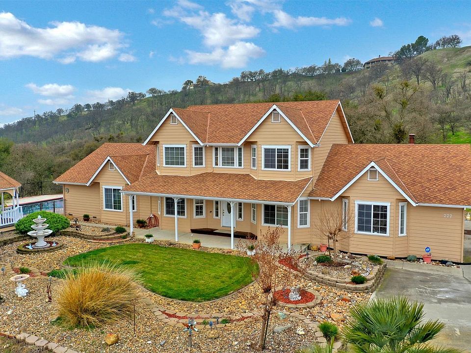 Is 7 your lucky number? If so then this private oasis with custom built home, built-in pool, owned solar, 4 car garage with office space, covered RV parking, barn, garden area, 12 fenced acres and panoramic view that will take your breath away is for you! Great location close to La Contenta Golf Course and New Hogan Lake, paved road, gated entry and paved driveway. Landscaped front and back yards with auto sprinklers makes for easy care so you can relax by your pebble tec pool with security fence and cover. View from the gazebo stretches from the golf course to the local mountain ranges up to the snow capped Sierras. No expense spared when this custom home was built offering a stunning entryway, huge master suite downstairs with vaulted ceiling, back deck access, pellet stove and master bath with jetted tub, 2 walk-in closets and 2 sinks. Living room with gas log fireplace, kitchen with island and upgraded appliances, family room with wood stove and built-ins and formal dining room.