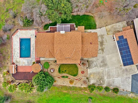 Is 7 your lucky number? If so then this private oasis with custom built home, built-in pool, owned solar, 4 car garage with office space, covered RV parking, barn, garden area, 12 fenced acres and panoramic view that will take your breath away is for you. Great location close to La Contenta Golf Course and New Hogan Lake, paved road, gated entry and paved driveway. Landscaped front and back yards with auto sprinklers makes for easy care so you can relax by your pebble tec pool with security fence and cover. View from the gazebo stretches from the golf course to the local mountain ranges up to the snow capped Sierras. No expense spared when this custom home was built offering a stunning entryway, huge master suite downstairs with vaulted ceiling, back deck access, pellet stove and master bath with jetted tub, 2 walk-in closets and 2 sinks. Living room with gas log fireplace, kitchen with island and upgraded appliances, family room with wood stove and built-ins, formal dining room and more. Contact agent for full amenities list.