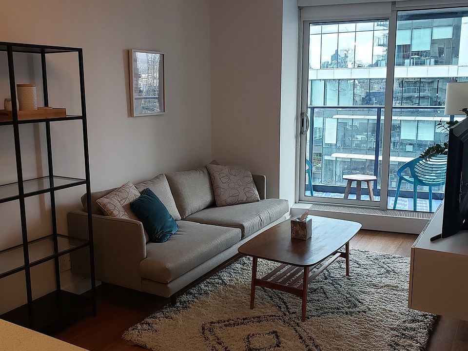 Fully Furnished 18th Floor unit at The Garden Residences tower located in the heart of downtown Vancouver. Walk out to the cultural, entertainment and shopping districts. Costco, Library Square, BC Place Stadium, Rogers Arena, Robson St shopping, supermarkets, Granville Entertainment district, Yaletown, Pacific Center Mall, False Creek seawalk, Skytrain transit, Coal Harbour and much more all steps away. Walk to work for Amazon employees and NorthEastern University students. Features: Video Tour available on request 1 bedroom + 1 Den/Flex Room + 1 Bathroom + 45sf Balcony Fully Furnished including kitchenware, airfryer,dishware and utensils + Premium Casper Mattress always with mattress protector + Bathroom with white stone countertop and floor, Kohler fixtures + Covered balcony + Air cooling and heating + Roller shade on all windows + High end finishes including full set of stainless steel Miele appliances and washer/dryer Appliances (Miele): Built-in cabinet fridge with freezer, dishwasher, gas cooktop, garburator, convection-microwave and hood fan Washer and Dryer in-suite Amenity/services: 24 Hour Concierge with surveillance cameras Fitness center . BBQ patio lounge Swimming pool - hot tub- dry sauna bike locker storage Amenity Room Included: Gas/Heating/Water Tenant responsible for: Security Deposit: 1/2 month rent Strata bylaw violation fees Tenant insurance purchase Move in/out fees: $300 ( charged by strata ) Terms: No smokers /vaping No pets allowed No sublets / AirBnB Fully furnished apartment References, employment and credit check Getting Around Provided by Walk Score Walk Score 100 out of 100 Daily errands do not require a car. Transit Score 100 out of 100 World-class public transportation. Bike Score 82 out of 100 Biking is convenient for most trips. Nearby public bike rental hub $300 move-in fee charged by Strata Tenant responsible for any Strata fines incurred Tenant insurance required w/ 2m liability No smoking/vaping building No pets No sublets/ airbnb Contact for video link.