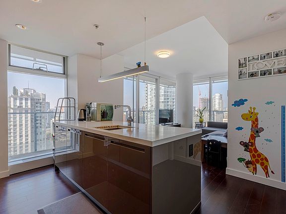 Here is your chance to own a CORNER view suite at Telus Gardens by Westbank! This 887 SF 2bedroom + den home features a luxurious en-suite bathroom with his and her sinks, gourmet kitchen with Quartz countertops & top of the line Miele appliances, built in oven and microwave, Kohler bathroom fixtures, hardwood floors, energy efficient heating and cooling system, and spacious wrap around covered balcony. The BUILDING: amenities include a massive fitness room, outdoor hot tub and swimming pool, 24 hours concierge, children's play area, an outdoor resident lounge. The AREA: Unbeatable location; steps to restaurants & coffee shops, entertainment, Pacific Centre Shopping Mall, and Skytrain station. Call for a private appointment.