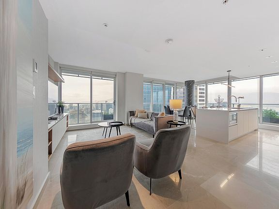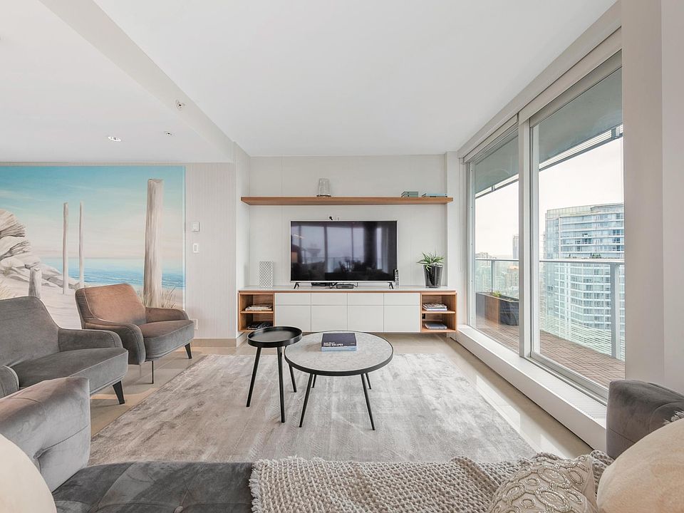 Incredible two bedroom & flex home in downtown's most desirable high rise. This north west facing two bedroom & flex home comes with a 265 square foot wrap around balcony. Featuring spacious living area, gourmet kitchen with Miele appliances, entertainment sized living area, separated bedrooms, curtain wall system to maximize views, marble hardwood flooring throughout, A/C and endless city mountain & water views. Please note: Bed setup: 2 x Queens, plus 2 x twin size air mattresses (linens included for the air mattresses) Free parking: available on location (underground secure) Furnished units are not available to rent unfurnished. Included: linens, towels, cable TV (basic), Wifi Internet (free), washer/dryer (on suite), full kitchen, and AC (portable or central). NOT included: Toiletries, condiments (salt, pepper, ketchup, etc.), soap, dishwasher detergent, laundry detergent, toilet paper (2 rolls are complimentary upon arrival), and paper towels * 30 day minimum rental period * Security deposit required * No Smoking * No Pets * References required There is a onetime cleaning fee of $375 and a onetime move-in fee of $300 All reservations will be confirmed within 24 hours after booking Minimum rental age is: 25 We do NOT host events/parties/overnights in our suites at the moment All prices are subject to change without notice prior to booking. We reserve the right to decline a booking Disclaimer: While every effort has been made to provide current and accurate information presented on the listing, aesthetic features such as furnishings, are subject to change at any time. Please schedule a viewing or request a virtual tour of the unit to see a current representation.