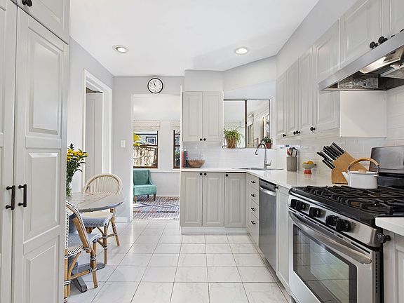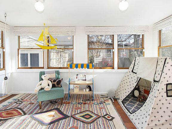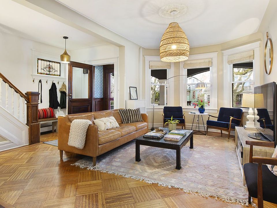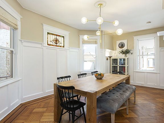 This exceedingly charming 7 bedroom, 2.5 bath Victorian gem in the desirable Ditmas Park neighborhood of Brooklyn will instantly win your heart with its incredible location, lovely setting and fabulous living space! Nestled on a beautiful tree-lined street amidst other stunning Victorians, the renovated 1901 jewel-box home makes a striking impression with its distinctive architectural design. Enhancing the warm, inviting tone is a pretty landscaped front garden, brick paver walkway & steps, and large wraparound porch with a swing for the ultimate outdoor pleasure. A long private driveway proceeds back to a convenient 2-car garage providing plenty of parking for vehicles. Main entry doors lead into exquisitely-detailed living space on the expansive parlor level. Here an airy open floorplan for entertaining is met by generous natural light. Further complementing the classic yet contemporary ambiance are such wonderful elements as original parquet floors, tasteful wainscoting and moldings, gorgeous stained glass, and an original staircase; all in pristine condition. The gracious living area brightened by a bay of triple windows spills into the formal dining room through a wide opening where you can comfortably serve sit-down meals for up to 12 with an elegant backdrop. The eat-in kitchen is appointed with ample cabinetry plus a pantry, Caesarstone countertops, tile floors & backsplash, and stainless steel appliances. Adjoining is a splendid sunroom enveloped by windows, perfect for such uses as a den, breakfast room, playroom or office. Rounding out the main level is a guest powder room, and access to the lush, spacious grassy fenced rear yard for relaxing, barbecuing, and gardening. Four sun-bathed bedrooms with excellent closet space and a full hall bath comprise the 2nd floor. Another 3 well-proportioned bedrooms with vaulted ceilings and 2 huge storage closets occupy the 3rd level, affording versatile space for a home office and other purposes. Extending the living quarters is a big finished basement (approx. 900 sq ft) featuring a rec room with columns, recessed lighting & wood floors, laundry room with sink & full-size LG washer/dryer, and modern renovated tile bath with glass-encased shower. A new roof, new hot water heater, new water main line, updated electrical panel & Nest thermostats take this beauty over the top! Best of all is the great location near the B & Q subway lines, and the many shops & restaurants along Newkirk Ave & Cortelyou Road.