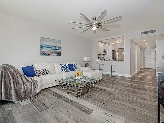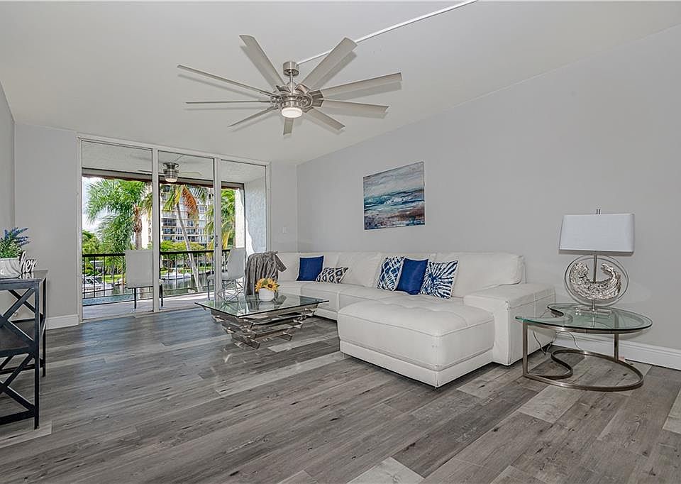 Amazing completely renovated 2-bedroom 2 full bath designer kitchen quartz countertops stainless steel appliances both bathrooms are perfectly done !!! separate dining area recessed lighting breath taking view from large, screened patio Community has over 5 acres of waterfront residences. Amenities include 24-hour manned security, courtesy bus, function hall, barbeques areas, heated pool, hot tub, sauna, billiard room, card room, putting green, etc. for Boaters Dockage available for purchase.