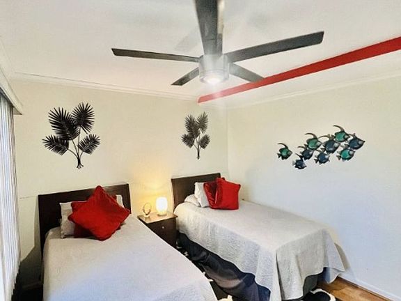 Inside, you'll find generous living and dining areas, a fully equipped kitchen, and two full bathroomsperfect for families or guests. Both bedrooms are roomy, with plenty of closet space. The unit is quiet and private, ideal for relaxing after a day in the sun.