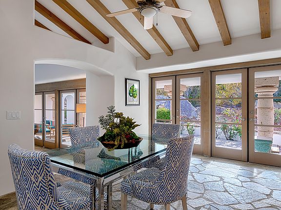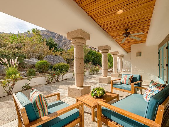 Shangri La best describes this exceptional property located in Tennis Club South in Palm Springs. Once you enter this special home you can sense a level of privacy and seclusion that few residences offer. Phenomenal panoramic views across the valley floor and beyond await you from the front-loaded pool and spa as well as from the master bedroom. This custom-built home, with Minoan columns modeled after those of the Palace of Knossos in Crete, provides a wonderful flow of both indoor and outdoor living and entertaining space. Fantastic separation of public and private areas with secluded patios located off of each bedroom. Beautiful living room with fireplace, vaulted ceiling and walls of French doors flanking each side of the room make for a magical gathering place for all. A unique location nestled beneath the San Jacinto Mountains yet minutes from downtown Palm Springs. Truly desert living at its finest!