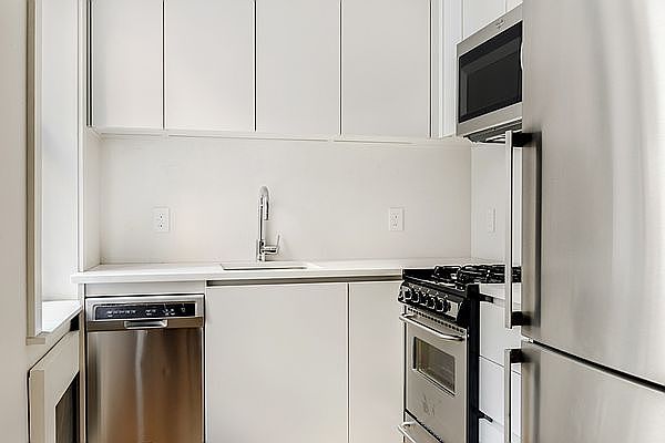 Renovated alcove studio with sliding glass partition in an elevator building in Crown Heights. Apartment features: - in-unit laundry - integrated appliances - dishwasher - microwave Note: Pictures are of a different apartment with similar finishes