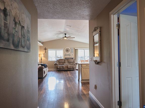 Welcome home! Upgrades galore on this single family residence including 2019: Laminate flooring, repiped with PEX pipes and 2021: water heater, AC unit, Leaf Guard Gutters, Exterior painting. Kitchen offers gas range, bar seating, tile backsplash, and glass front cabinets. There is a carport for extra parking, workshop with power, and the backyard backs up to peaceful farm fields. There is a total of 3 bedrooms plus a den that could be used as an additional room, office, or living room.