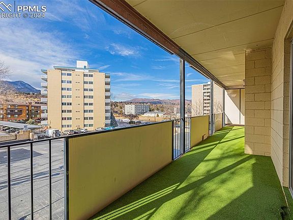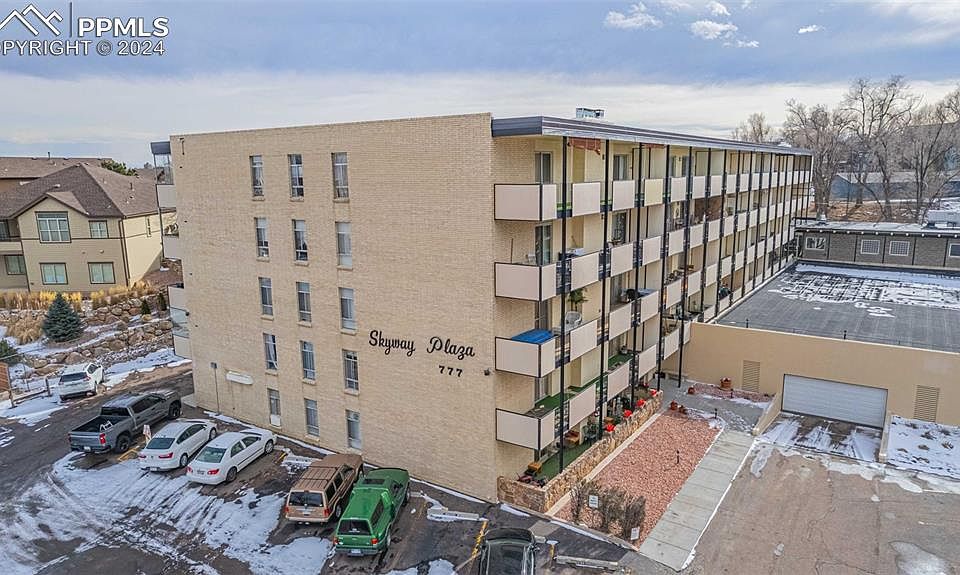 Welcome home to this beautiful light and airy end-unit condo in the desirable Skyway Plaza, with 1 designated garage space included! Nestled at the foot of the Colorado Rocky Mountains, Skyway Plaza is a 55 and up community that allows 35+ as well! This end-unit condo features a large living area with sliding glass door onto private balcony with million dollar Rocky Mountain views, 2 spacious bedrooms, 2 bathrooms and has a light and welcoming feel. Unit boasts ample storage including a large pantry and extra closets. Complex has large common areas on the second floor for entertaining or just lounging and relaxing. Relax in the sauna! Unit comes with separate main level storage, community laundry space, secure building, elevators for convenience, and much more! Minutes from I-25, Downtown, Cheyenne Mountain, Shopping and everything the west side has to offer! Welcome to Colorado Springs premier carefree west side living, welcome home!