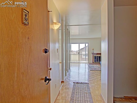 Welcome home to this top floor unit in the 55+community in the beautiful Skyway area of Colorado Springs. There is a terrific deck of the living room and bedroom. A quiet place to enjoy a morning cup of coffee. The outdoor carpet is newer and a nice gray color, just needs your pot of flowers. The living room has a fireplace for those chilly nights when you need to cozy up. The kitchen has newer cabinets and a pantry. There is a nice space for your desk to get caught up on your emails. This unit offers an INDOOR garage parking spot, number 13, there are only 30 of them. Don't let this one get away. The second floor has the community room, work out area and pool. The laundry room is on the first-floor to the left of the elevator. The storage unit is to the right of elevator through the walk door.
