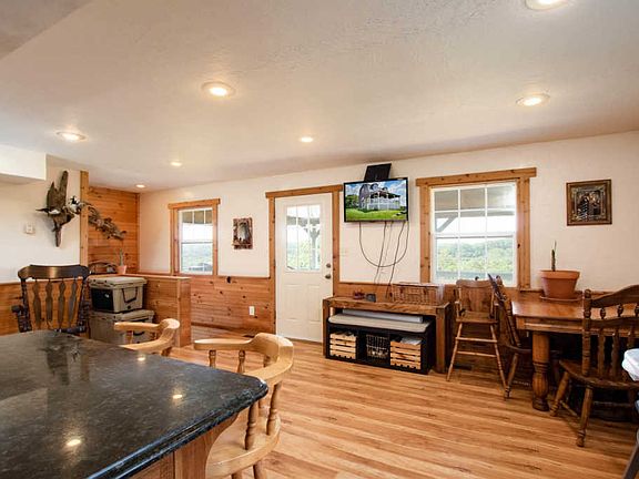 You can not beat these views! This amazing 1 bedroom 2 bath, multi-level home sits on top of an over 13 acre plot giving way to views from every angle. The wrap around porch is exactly where you want to be relaxing and enjoying your new expansive property while watching wildlife play! Additional highlights of this home include large windows allowing in tons of natural light, Granite counter-tops,an warm wooden floors and wall details throughout. A second potential layout would be to use the additional dining space beside kitchen as a living room and making the walk-out basement level a bedroom! There are so many options with the gorgeous 'cabin in the woods!' This property will not last long! Call for an appointment today! :)
