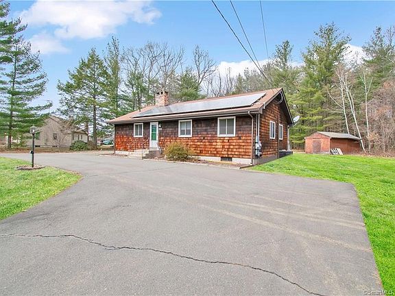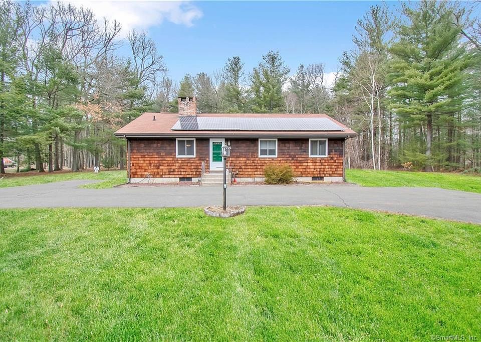 Looking for quiet country living? Than look no further than this well kept ranch that is minutes to I-91 and features a large, level back yard that backs to the woods. Very private and great for nature watching! Step inside and see the gleaming hardwood floors and freshly painted interior. Kitchen has been recently remodeled and features granite countertops, a built in hutch and a built in dining table. Living room is large and has a fireplace and a sliding glass door that goes out to a private deck and gives great views of the yard. Bedrooms are spacious and flooring is new in two of the bedrooms. Master bedroom features it's own private bath. Anderson windows are three years old. Electrical has been updated. Speaking of electrical, your electricity bill will be tiny with help from the solar panels. Current owner pays $9.00 a month for electricity! Basement is unfinished but heated and provides ample storage. Woodstove in basement to remain for buyers enjoyment. New oil tank. Owner has been meticulous with maintaining and servicing Central air and Furnace. Wonderful home just waiting for it's new owner!