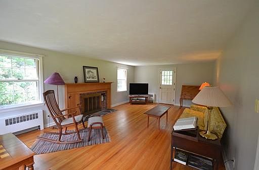 Charming Cape in Wilbraham with plenty of room. This two bedroom home could easily have a third bedroom in the Den. Kitchen with counter for seating, built in desk, pantry closet, and loads of cabinets open to Family Room addition with cathedral ceilings, skylight and large picture window, offers a great location for the family to gather. Spacious formal Living Room with fireplace and Dining Room with gleaming hardwood floors. Lots of storage space including built ins in bedrooms and walk in closets. Boiler less than 8 years old and vinyl siding and gutters installed 4 years ago. All appliance to remain. Fresh neutral paint throughout. Private back yard with lovely plantings. House is set far back from the road. Call today for a private showing!