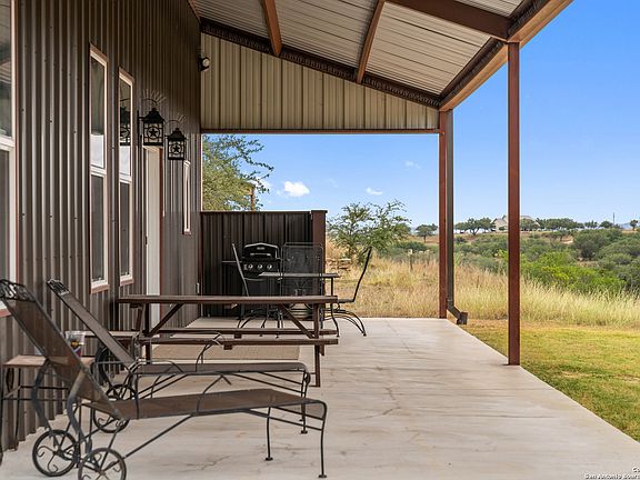 Fantastic barndominium for your weekend getaway! This beautiful 8.39 acres in the highly sought after Summit at Cypress Mill Subdivision boasts awesome views and nice mature oak trees. This 2013 Mueller Metal Building is in immaculate condition and perfectly situated on a lower ledge of the property for seclusion and privacy. The living quarters consist of a 1 bedroom/1 bath, open concept kitchen, dining, and living room. Upstairs is a half bath with a bonus room bedroom/office. The laundry area is downstairs. The sellers are conveying all furniture and furnishings inside the beautiful living areas. The large front porch overlooks the relaxing views of your property and wildlife. The grill and porch furniture will also convey. The large spacious workshop with huge roll up doors on each end is PERFECT for all your projects and layout is very well thought out! Barndominium has a water well and conventional septic already in place! The upper street level property has a perfectly flat building site with amazing views and is ready for building your primary residence. There is wiring in place for RV hookups - two 30 amp and one 50 amp. There is a 12kw dual fuel (gasoline or propane) house generator, and an ATV (needs servicing) which both can be purchased separately. A large portable building for lawn equipment conveys with purchase. Located in a very desirable gated subdivision (The Summit at Cypress Mill - established 2013), paved road access, underground utilities, and wildlife exemption (Blackbuck Antelope) are in place for reduced property taxes. You are within minutes of Johnson City, Blanco, and Marble Falls. There are sensible restrictions in place to protect your investment. Come take a look at the place to call home and enjoy the beauty of the Texas Hill Country with peaceful, dark, beautiful, star-filled night skies! If you want peacefulness and serenity, look no further! NO STR ALLOWED.