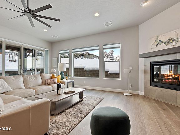 This beautifully designed turnkey custom home is perfect for your part time seasonal getaway or full time living!  This like new,  lightly lived in home offers an inviting open Great Room concept, single level living, beautiful outdoor space and low maintenance landscaping.  Located just 1 mile from downtown Prescott . The immaculate gourmet kitchen presents perfectly with two tone custom cabinetry, generously sized island with substantial storage, quartz countertops, custom tile backsplash, 5 burner gas cooktop, built in gas oven/microwave and a sizable walk-in pantry. You'll enjoy the inviting great room space with large windows for plenty of light, 10' ceilings, upscale contemporary light fixtures, cozy gas fireplace and an open dining area with custom built in buffet.