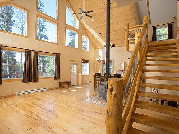 This is the perfect mountain getaway, tucked into the forest on almost 4 acres you canât beat this location. Easy access to paved roads and lower elevation make this home a dream come true. Character abounds with vaulted ceilings, a wall of windows and custom woodwork throughout. The great room is full of natural light leading out onto the large deck. The private master suite includes a soaker tub and a walk-in shower with dual shower heads. This home doesnât make it hard to unplug from it all.