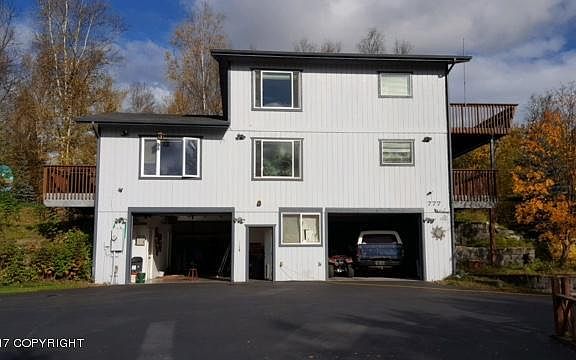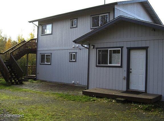 Here's your golden opportunity to own this duplex located in the core of Wasilla but still very quiet cul-de-sac; 5 min. walk to Wonderland Park.Very private lot with southern exposure and mountain and city light views. Extensively landscaped with many mature fruit trees, spruces and ornamentals. Main level is 1270 SF, 1 bd, 1.75 bath, open living, dining, kitchen, laundry/entry and 2 decks, 1 with a natural gas BBQ. Upstairs; 800 SF, 1 bd, full kitchen, bath with laundry and a spacious south-facing deck with built-in sitting and private entrance. Garage 1270 SF 10' ceiling with 2 garage doors, 3/4 bath with urinal, open utility and laundry. Huge paved parking area. Great well. Excellent neighbors. Washer and dryers on each floor including the garage.Gutters. Priced aggressively. Make your appt today to view this unique property! Seller requests only pre-qualified buyers, please. Thank you