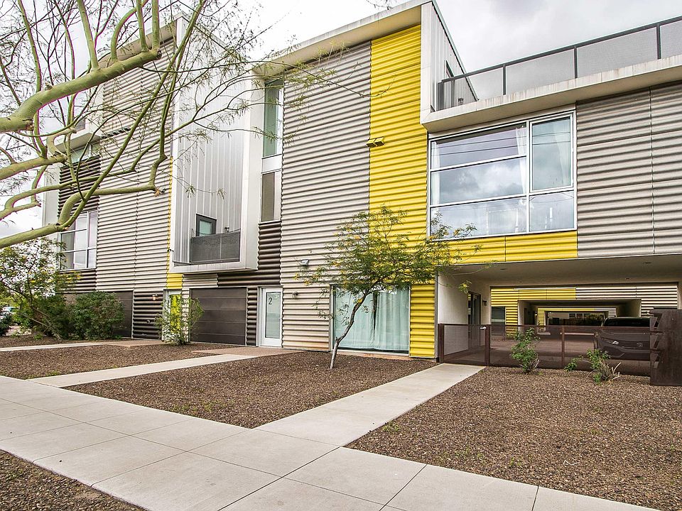 Awesome Urban location with restaurants in walking distance. Live/Work in the heart of Phoenix! This unique property offers the rare opportunity to run your small business from your own storefront work space below with an attached bath plus have generous 2 levels of modern living above. One of only 3 Live Work units in the community. 1 car garage plus open covered parking, 2 rooftop decks with downtown views, modern finishes, a top floor suite and flexibility to use the work space as bedroom number 2. North/South exposure. Truly unique modern living. No pets.