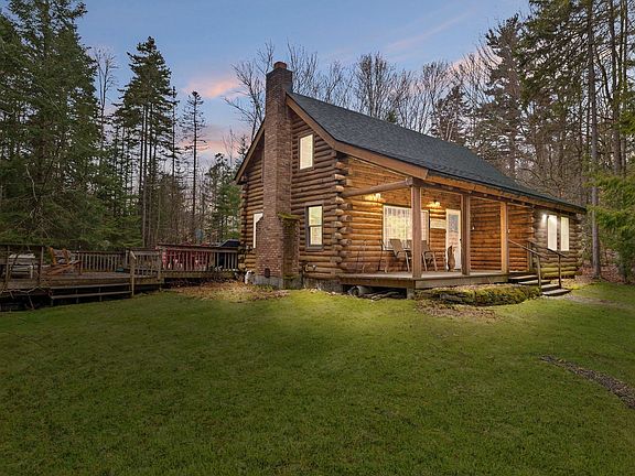 Welcome to this charming 4- bed 2- bath home in the desirable Mansfield View neighborhood of Stowe, Vermont. This log cabin was built by a local company based in Hartland, VT, so you can be confident in the quality construction! This idyllic property offers the perfect blend of rustic charm and modern updates. Situated right outside the downtown area, this property is close to amenities yet surrounded by woods, giving you privacy and convenience. A spacious yard and inviting deck with a hot tub offers the ideal combination of relaxation and entertainment. This home is being sold fully furnished! Property was recently reconfigured from a 4 bedroom to a 2 bedroom with a loft. Has a 4 bedroom Septic. Open house 4/20/24 with delayed showings until after open house.