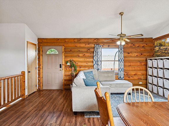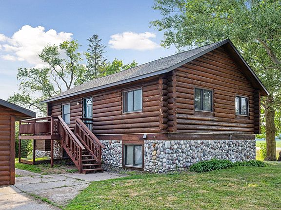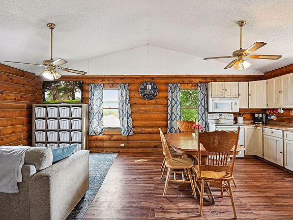 A little slice of heaven! This well loved home is in need of a little TLC (paint and carpet). This is your chance to own a one story log cabin on just over an acre with a hundred acre view. The open concept kitchen/dining/living area makes it easy to spend time with guests and the family room downstairs allows for some privacy. The owners have outgrown the home and now it can be yours. Spend time in your cozy 3 bedroom cabin relaxing or head out and take advantage of the fresh air. This property boasts an oversized garage and two story pole barn. Bring your toys, raise animals or start a hobby farm. There is plenty of storage for all of your needs. Don't miss this one. New roof on all 3 buildings, logs were stained last year.