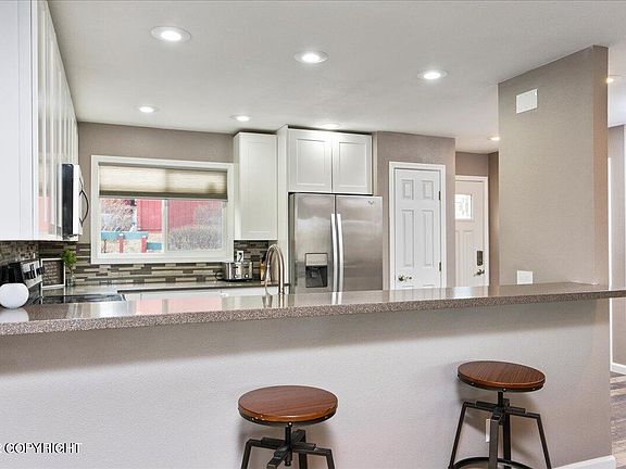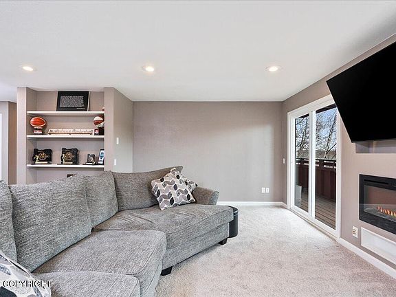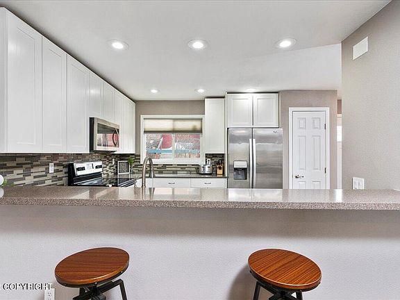 Stunningly Remodeled Condo w/High End Finishes & Tasteful Color Schemes! Nestled in a Quiet Neighborhood just Minutes from Shopping, JBER, & Hwy Access. Middle Level Condo Boasts Smart Home Capability, Can LED Lighting, Gorgeous Kitchen w/42'' Tall White Cabs/all Soft Close, Subway Tile Backsplash, Solid Surface Counters, SS Appliances. LR w/Mtn Views & Cozy Linear FPElectric Heating, Range, and Fireplace (sellers average electric bill $151/mth). Newer Hot Water Heater (about 2017). All Newer Windows. 1-Covered Parking Spot w/Nearby Outside Storage Unit. Car Plug-In (switch inside house to turn on/off). Kitchen w/Stainless Steel GE Whirlpool Range, Dishwasher, Microwave, Refrigerator. Extra Tall Cabinets for TONS of Storage- Pull-Out Garbage Can, 2 Lazy Susans, Spice Rack. Laminate Wood Flooring in Kitchen/Hallway/Bathroom. Carpet in Living Room & Bedrooms. Living Room w/Built-In Display Shelving, Sliding Door to Back Deck w/Mountain Views. Stunning Bathroom w/Dual Sinks, Solid Surface Counter, Bluetooth Speaker Fan, Built-In Linen Closet, Shower/Bath Combo w/Custom Tiled Surround. Both Bedrooms w/Blackout Shades.